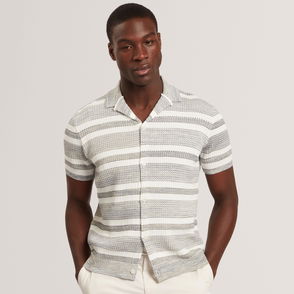 Standard Camp Short Sleeve Revere Collar Gauze Stripe Cotton Shirt