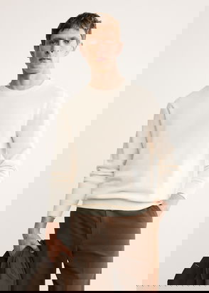 Waffle-Knit Stripe Half-Button Jumper With Wool In Off White/Putty