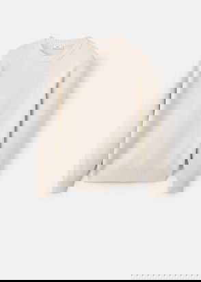 Azores Cotton Ribbed Collar Round Neck Jumper, Natural White