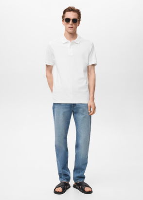 Knitted Striped Polo Sweatshirt In Off White And Navy