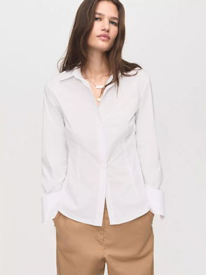 Sofia Cotton Poplin Long Sleeve Shirt, White