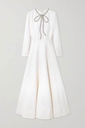 Carey Tie-Detailed Lace-Trimmed Embroidered Voile Midi Dress
