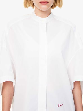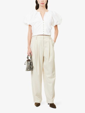 Balloon-Sleeve Cropped Cotton-Poplin Blouse