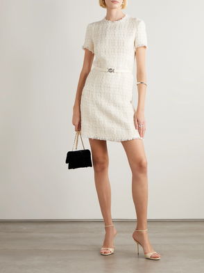 Belted Metallic Cotton-blend Tweed Mini Dress