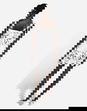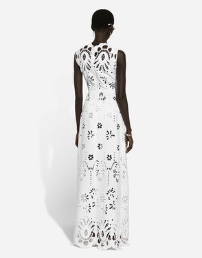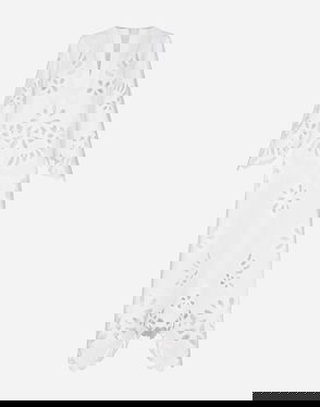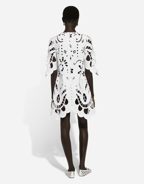 Floaty Short Cotton Dress With Floral Openwork Embroidery