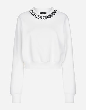 Cropped Jersey Sweatshirt With Logo Embroidery On Neck