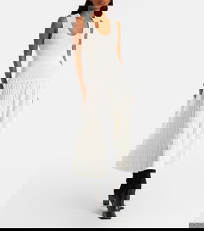 Stretch-Cotton Rib Ruched V-Neck Vest In White