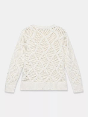 Sequin Open Stitch Jumper, White Ivory