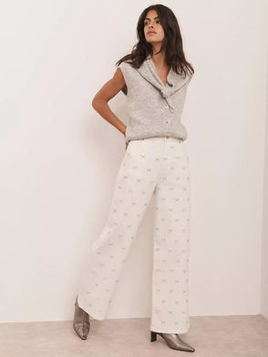 Diamante Bow Wide Leg Jeans, White
