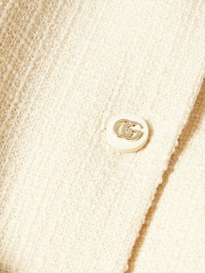 Textured Rose Collarless Boxy Fit Cropped Jacket, White