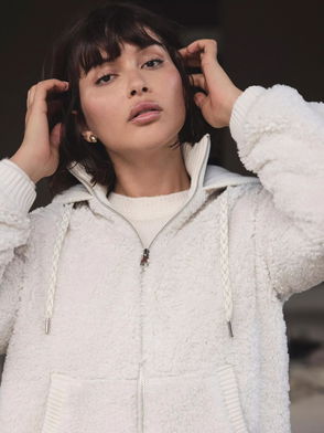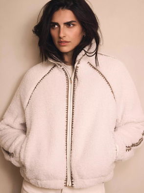 Whipstitch Detail Borg Jacket, White Ivory