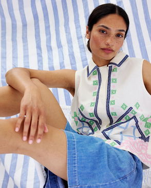Ecru Cream Cross Stitch Sleeveless Jacket