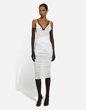 Tulle Draped Calf-length Dress