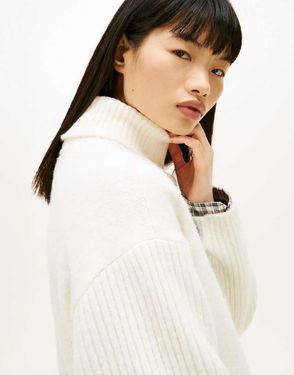 Wool Knitted Mini Jumper Dress With Cinch Waist In Off White