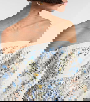 Floral Off-shoulder Linen And Silk Maxi Dress