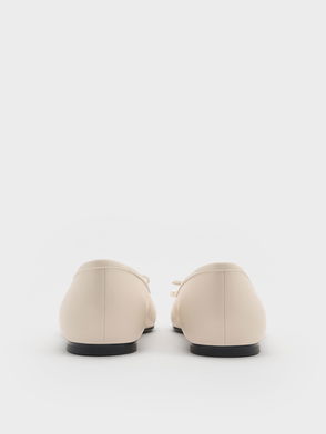 Patent Contrast-Trim Pointed-Toe Bow-Strap Flats