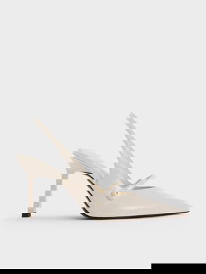 Helena Pearl-Buckle Pointed-Toe Slingback Pumps