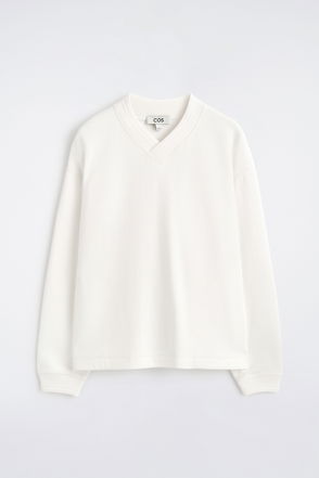 WAFFLE-KNIT COTTON V-NECK SWEATSHIRT