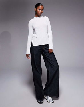Funnel Neck Ribbed Jumper, Off White