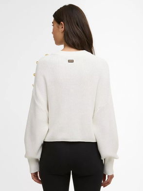 Funnel Neck Button Shoulder Jumper, Off White
