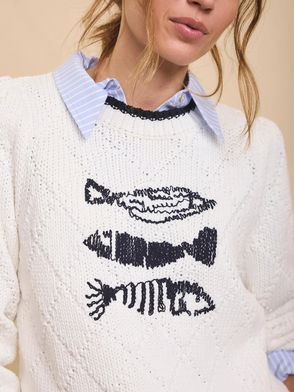 Diamond Knit Fish Motif Jumper, White Ivory