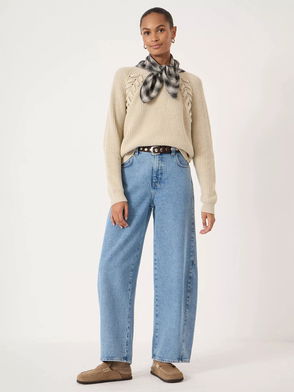 Slouchy Cable Knit Jumper In Natural White