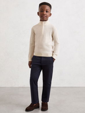3-9 Yrs Merino Wool Half-Zip Funnel Neck Jumper In Snow White