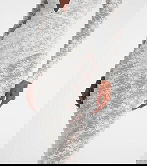 Floral-Pattern V-Neck Guipure-Lace Maxi Dress