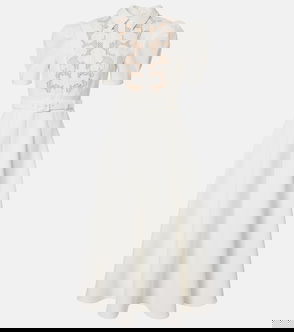 Lace-Trimmed Pintucked Cotton Midi Dress