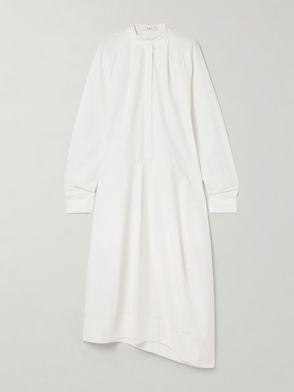 Asymmetric Pleated Cotton-poplin Midi Shirt Dress