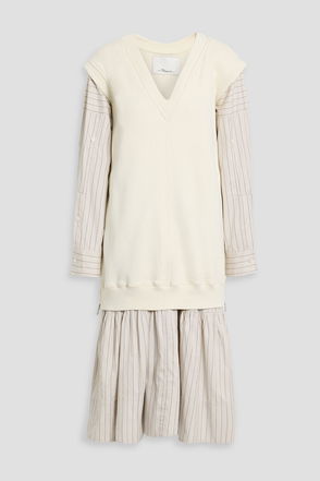 Smocking--Stitched Long-Sleeved Cotton-Canvas Midi Dress