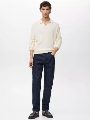 Hondarra Short Sleeve Cotton Knit Polo Shirt, Natural White