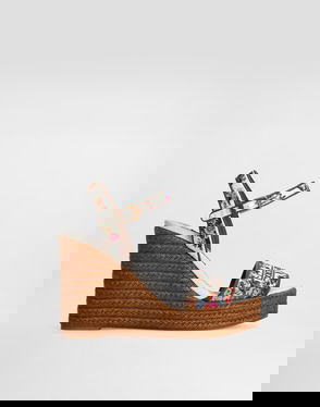 Nappa Leather WeDGe Sandals With Embroidery