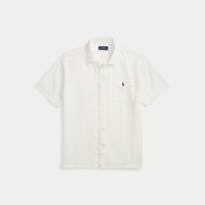Brand-Print Short-Sleeves Cotton-Poplin Shirt