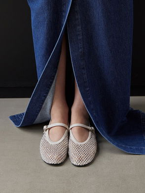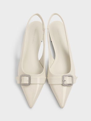 Patent Crystal-Buckle Pointed-Toe Slingback Flats