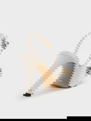 Patent Crystal-Buckle Block-Heel Slingback Pumps