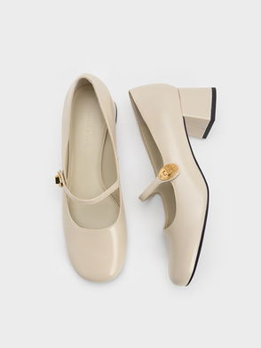 Hettie Patent Metallic-Buckle Block-Heel Mary Janes