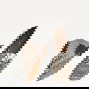 Burlington Mews Heeled Saddle Loafer In Dark Silver