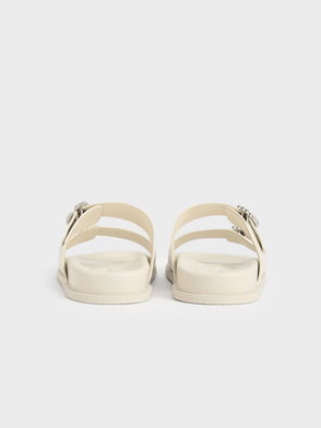 Whitney Leather Buckled Square-Toe Slide Sandals