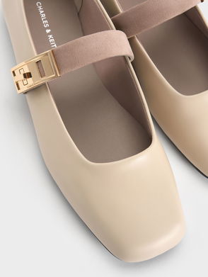 Lando Two-Tone Metallic-Buckle Mary Jane Flats