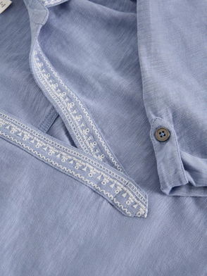 Allie Embroidered Jersey Shirt, Mid Blue
