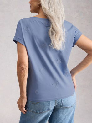 Nelly Embroidered Notch Neck T-Shirt, Blue