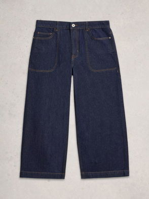 Tia Wide Leg Cropped Jeans, Dark Blue