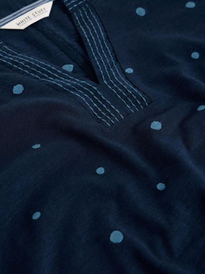 Cotton Short Sleeve Embroidered Floral T-Shirt, Blue