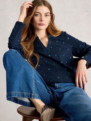 Weaver Polka Dot Notch Neck Top, Blue