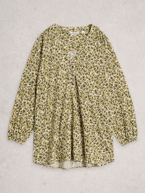 Ash Floral Linen Blend Top Containing LENZING™ ECOVERO™ Viscose, Grey/Multi