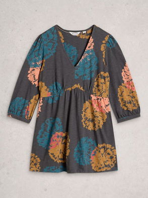 Megan Leaves Jersey Dress, Pale Blue/Black