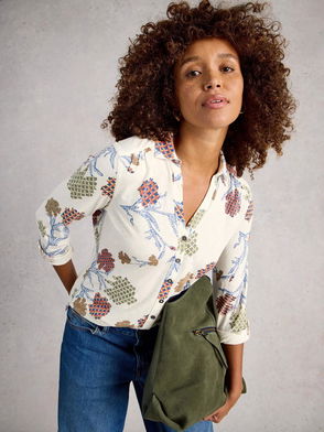 Annie Mixed Print Jersey Shirt, White/Multi