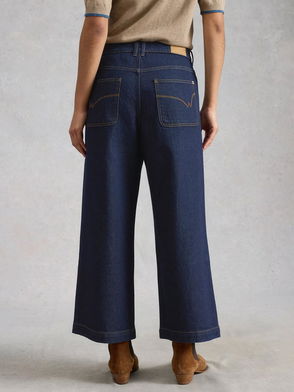 Tia Wide Leg Cropped Jeans, Dark Blue