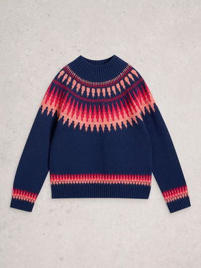 Kendal Wool Blend Fair Isle Button Neck Jumper